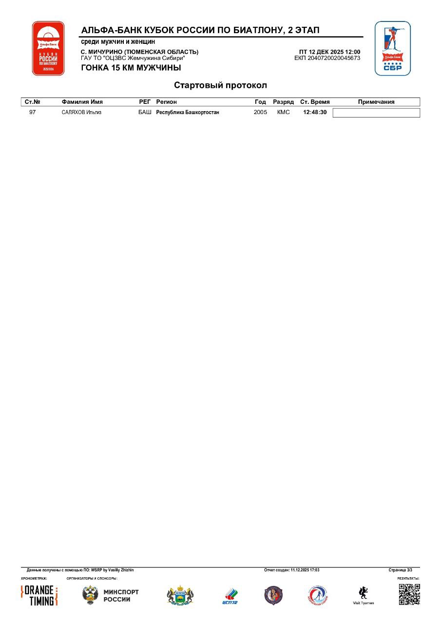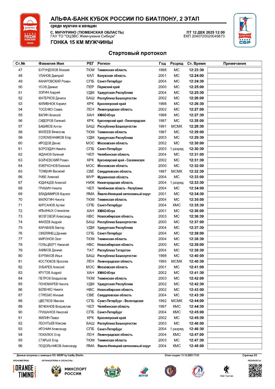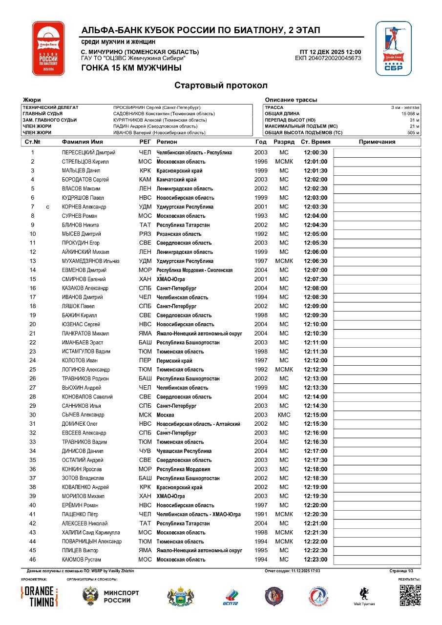 Стартовые протоколы на мужскую индивидуальную гонку: