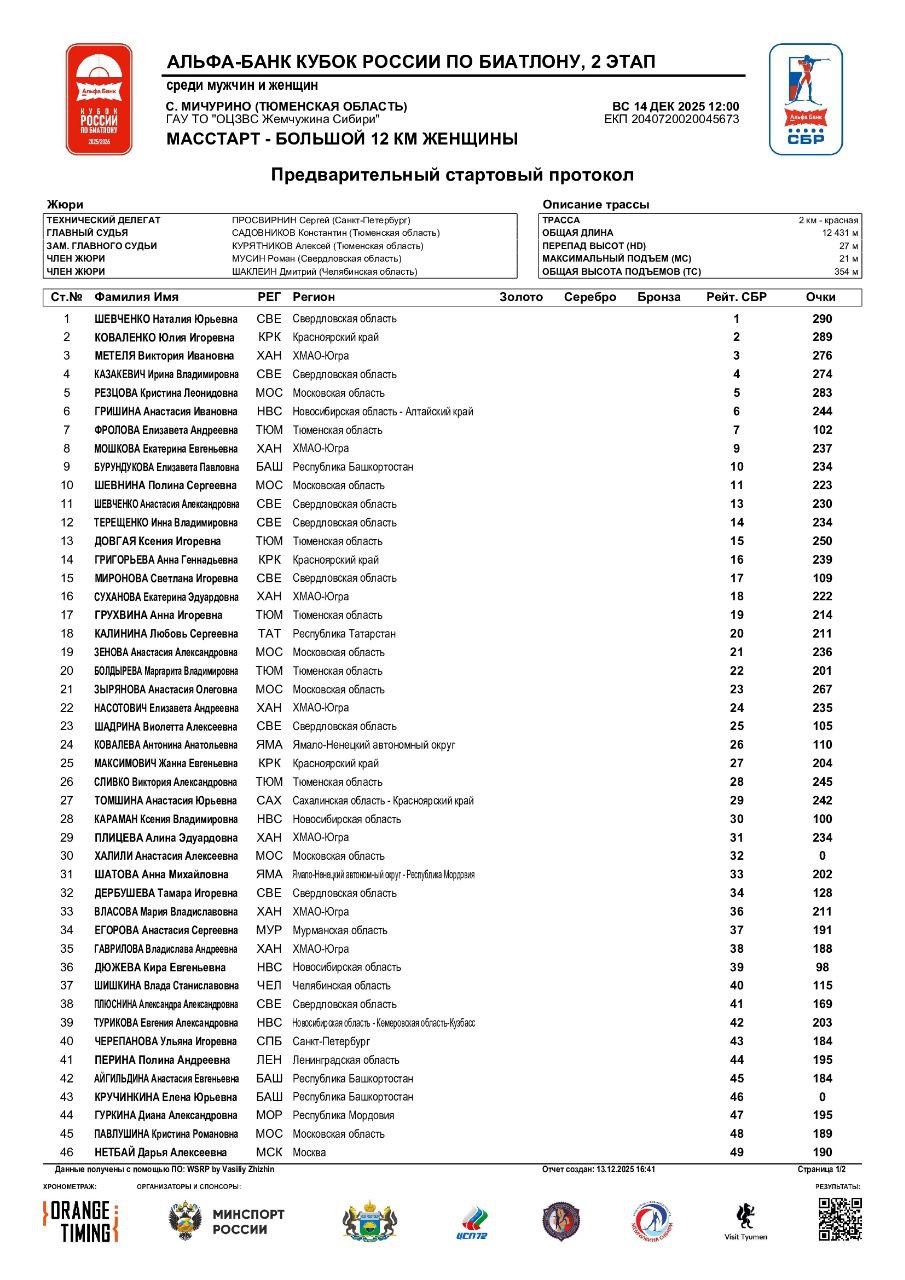 Завтра, 14 декабря, в Тюмени на биатлонном комплексе "Жемчужина Сибири" состоится большой женский масс-старт в рамках второго этапа Кубка России-2025/2026.