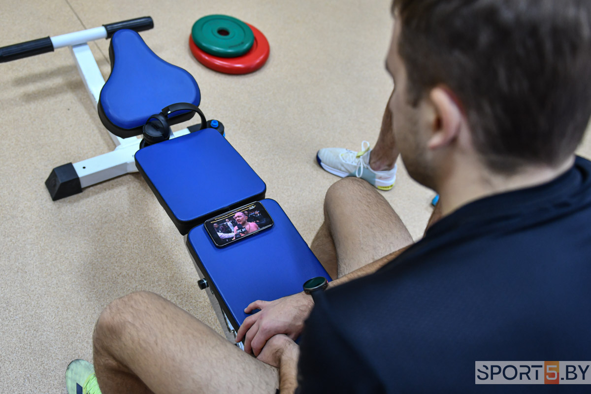 Группа в составе Максима Воробья, Ильи Авсеенко, Степана Данилова и Павла Белько вместе с тренерами Романом Синиченко и Александром Устиновым занимались в зале, попутно следя за боем Петра Яна и Мераба Двалишвили. К слову, пояс чемпиона UFC вновь отправился в Россию, чему белорусские биатлонисты были чрезмерно рады.