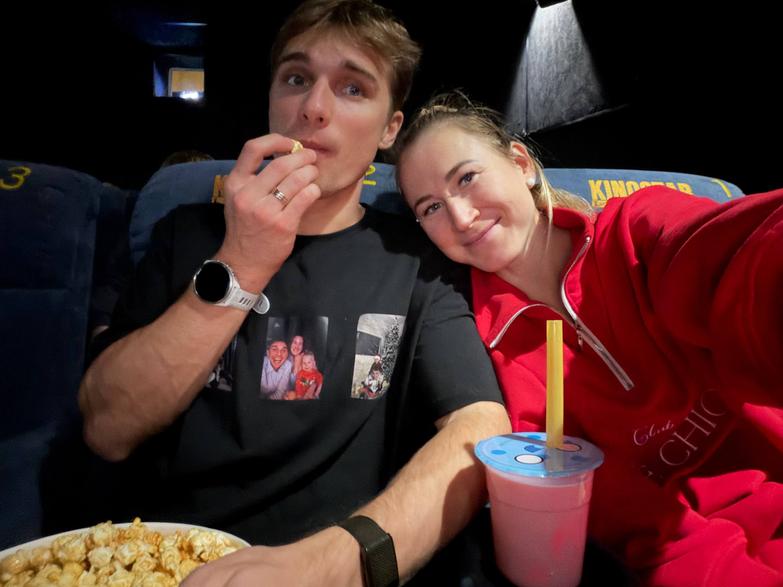 "Кафе, кино, веселые прогулки и спокойный вечер — идеальный выходной день с семьей перед заключительной неделей подготовки к первым гонкам сезона", — подписали публикацию Смольские.