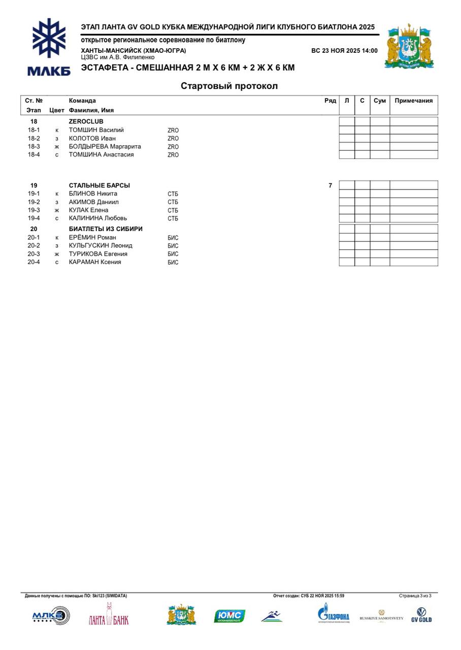Стали известны стартовые протоколы на смешанную эстафету в Ханты-Мансийске.