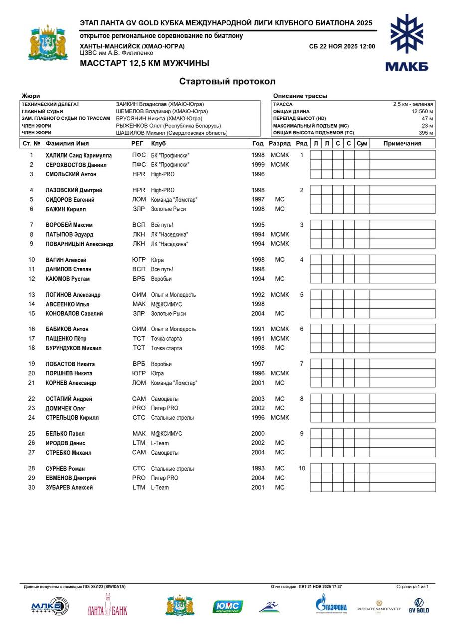 Стали известны стартовые протоколы масс-стартов на МЛКБ 2025.
