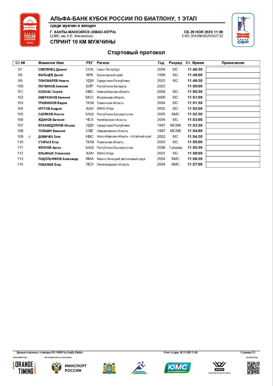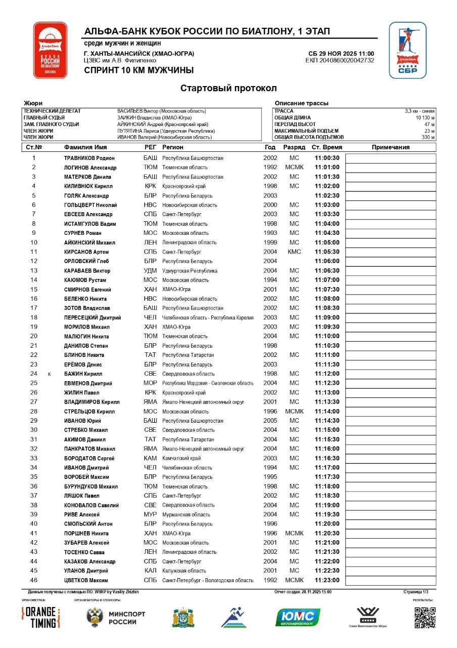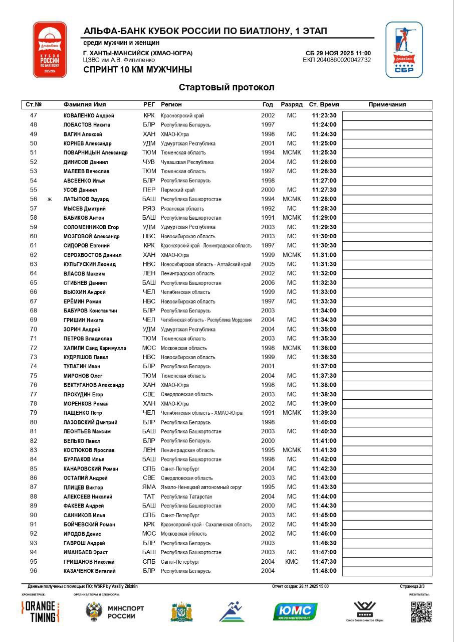 Кроме этого, завтра 29 ноября примут участие сильнейшие российские биатлонисты: Антон Бабиков отправится на старт 58-м, Эдуард Латыпов - 56-м, Даниил Серохвостов - 62-м и Карим Халили - 72-м.