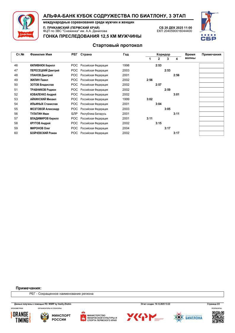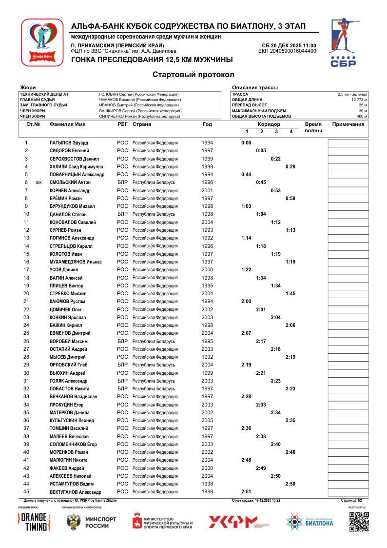 Стартовые протоколы гонки преследования 3-го этапа Кубка Содружества. Мужчины