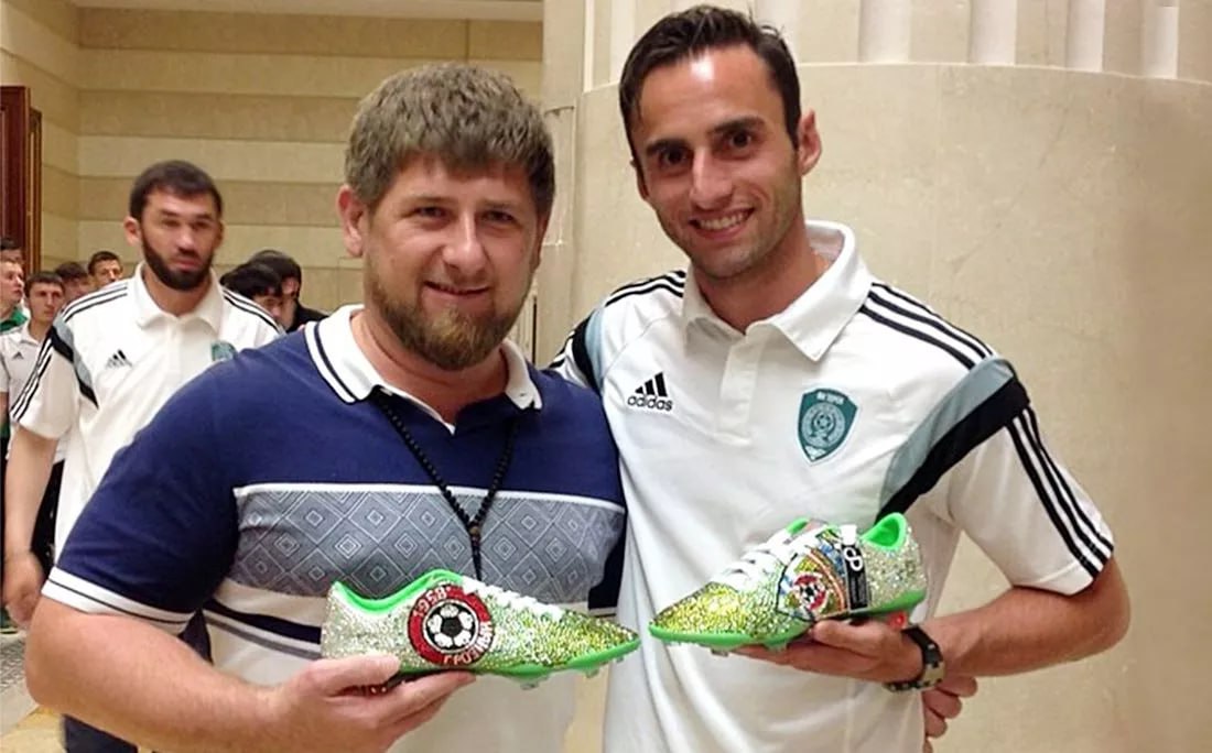 История о бриллиантовых бутсах, облетевшая футбольный мир, принадлежит бразильцу Моурисио. Полузащитник, сыгравший за грозненцев 162 матча, рассказывал, как Кадыров однажды пригласил его на ужин и преподнёс коробку, внутри которой оказались бутсы, украшенные настоящими бриллиантами.
