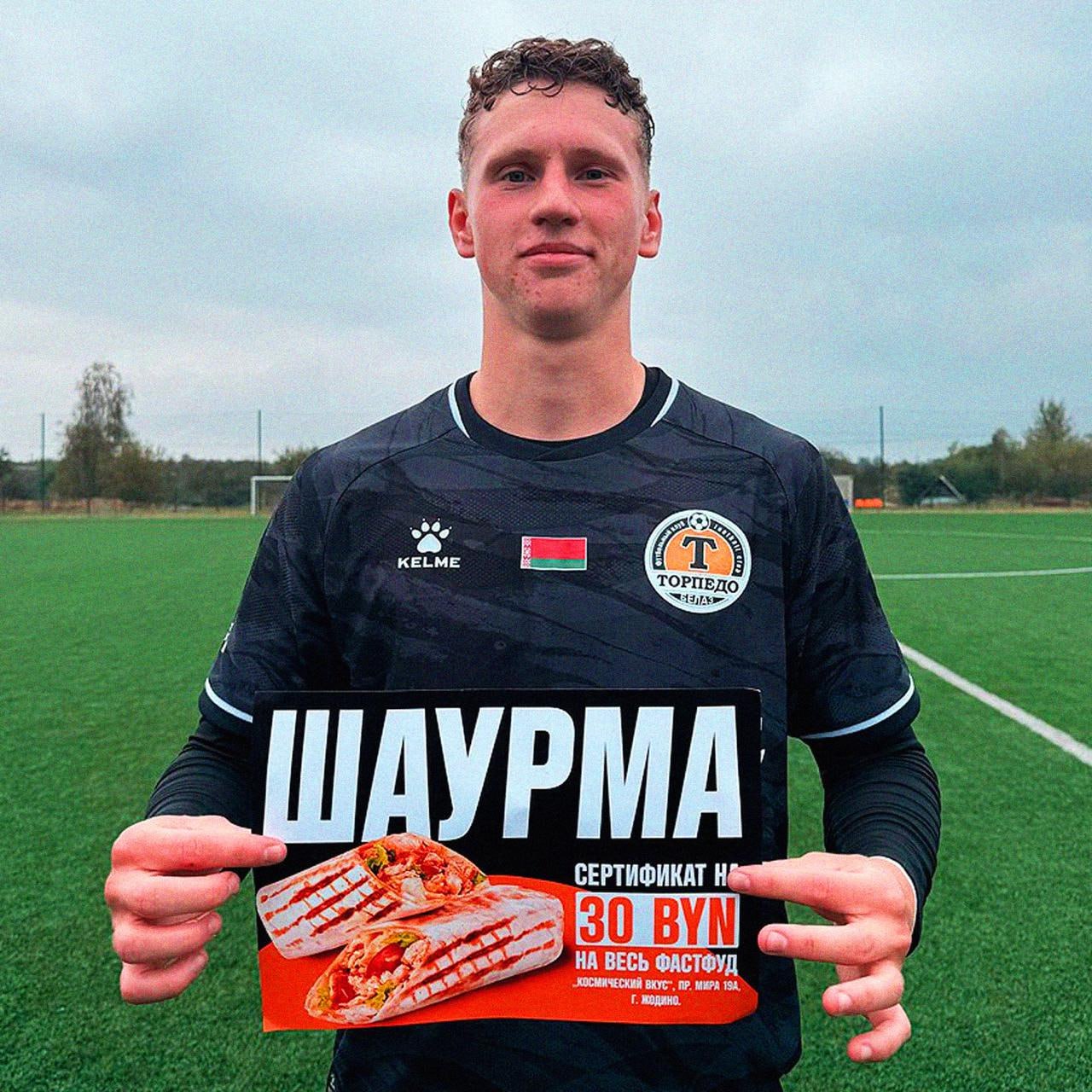 В дубле “Торпедо-БелАЗ” полузащитник Роман Железный после хет-трика получил сертификат на шаурму — 30 белорусских рублей чистого гастрономического счастья. Энергия после трёх голов — вещь нужная.