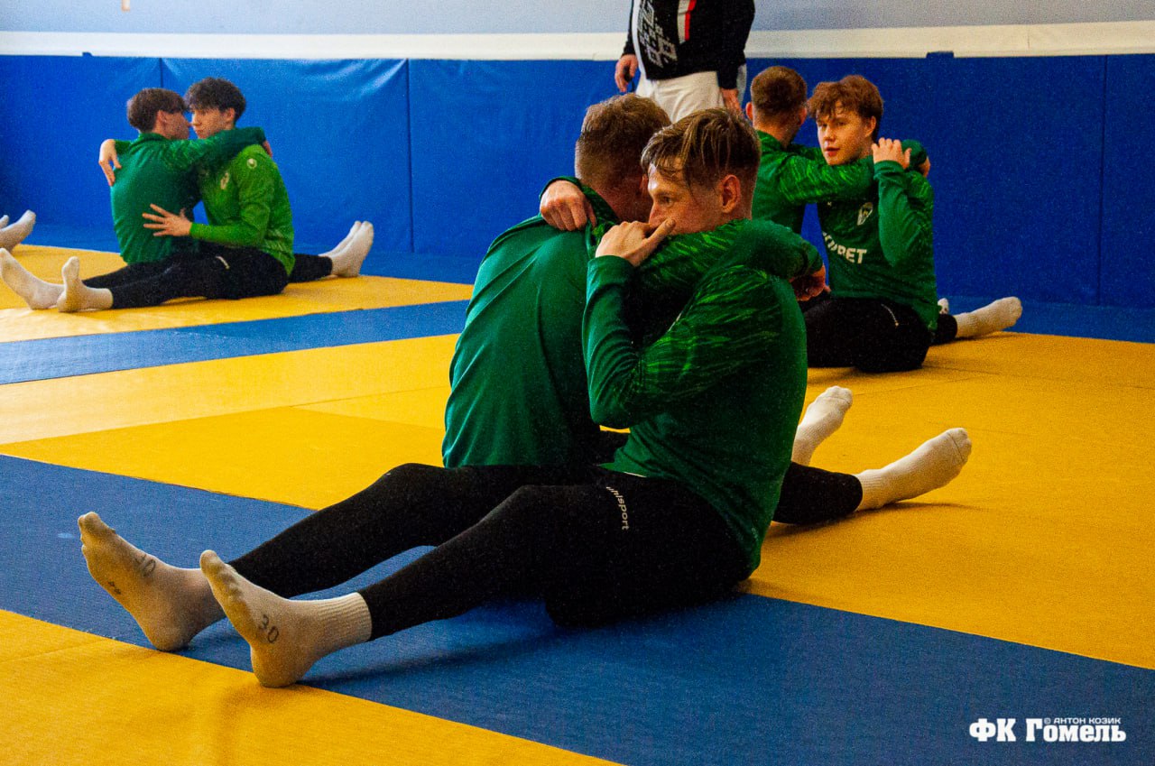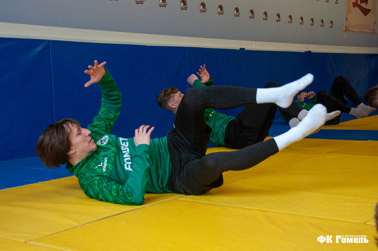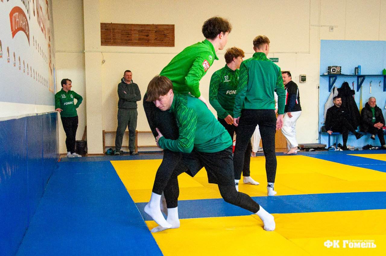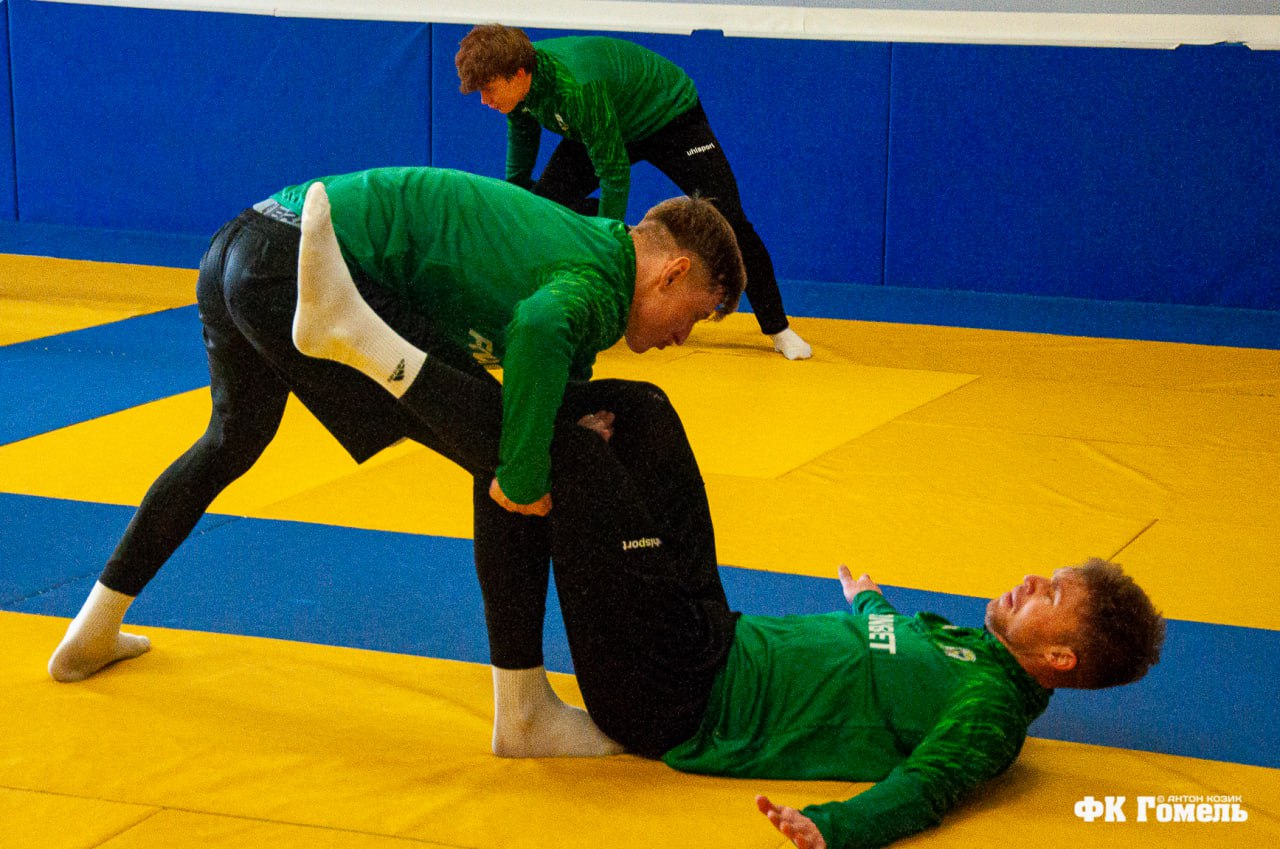 Футболисты "Гомеля" приняли участие в тренировке по дзюдо под руководством олимпийского чемпиона Игоря Макарова.