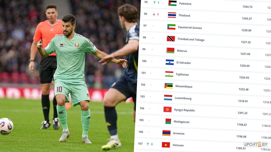 Сборная Беларуси по итогам года расположилась на 99-м месте, имея 1227.29 балла в активе. Ближайшими соседями "белакрылых" стали Тринидад и Тобаго (98-е место, 1227.32) и Сальвадор (100, 1226.65).