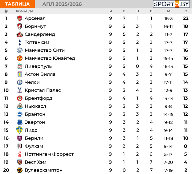 В чемпионате Англии по футболу завершился девятый тур. Поводим итоги всех встреч.