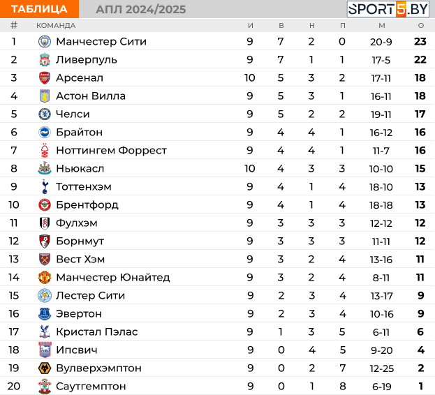 Завершился первый матч десятого тура в чемпионате Англии. "Арсенал" уступил "Ньюкаслу" в гостях.