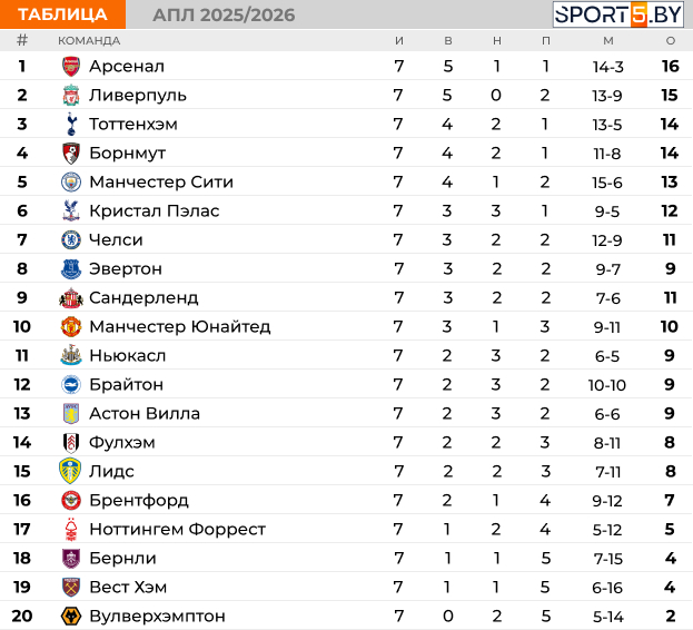 В чемпионате Англии по футболу завершился 7-й тур пятью матчами. Sport5.by подводит их итоги.