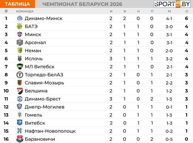 После трех туров "Ислочь" остается с четырьмя очками в активе, а "Динамо" набирает первые три балла.