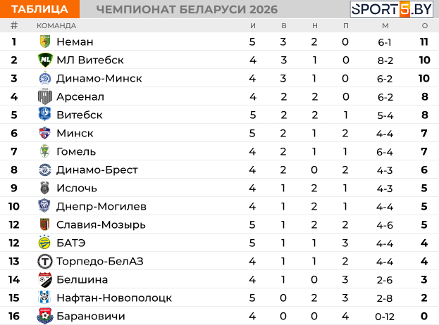 Таким образом, команда из Новополоцка осталась на 15-й позиции — два балла. Подопечные Сергея Гуренко — пятые с восемью очками в активе.