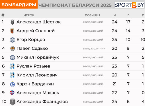 Подопечные Артема Челядинского очень даже неплохо смотрятся в осенней части сезона, да, уступили "МЛ", но они являются лидерами таблицы. С остальными командами "столичные" таких проблем не испытывали и явно рассчитывают на места повыше. Если глянуть в календарь "Минска", то "Сморгонь" — последний соперник из нижней части таблицы, а дальше молодых ребят будут ожидать "Торпедо", "Неман" и "Славия". Стоит отметить, что сплав молодости и опыта в команде дает свои плоды: Александр Макась входит в топ-10 бомбардиров лиги, а молодые ребята стремятся не отставать, регулярно принося очки в одиночку.