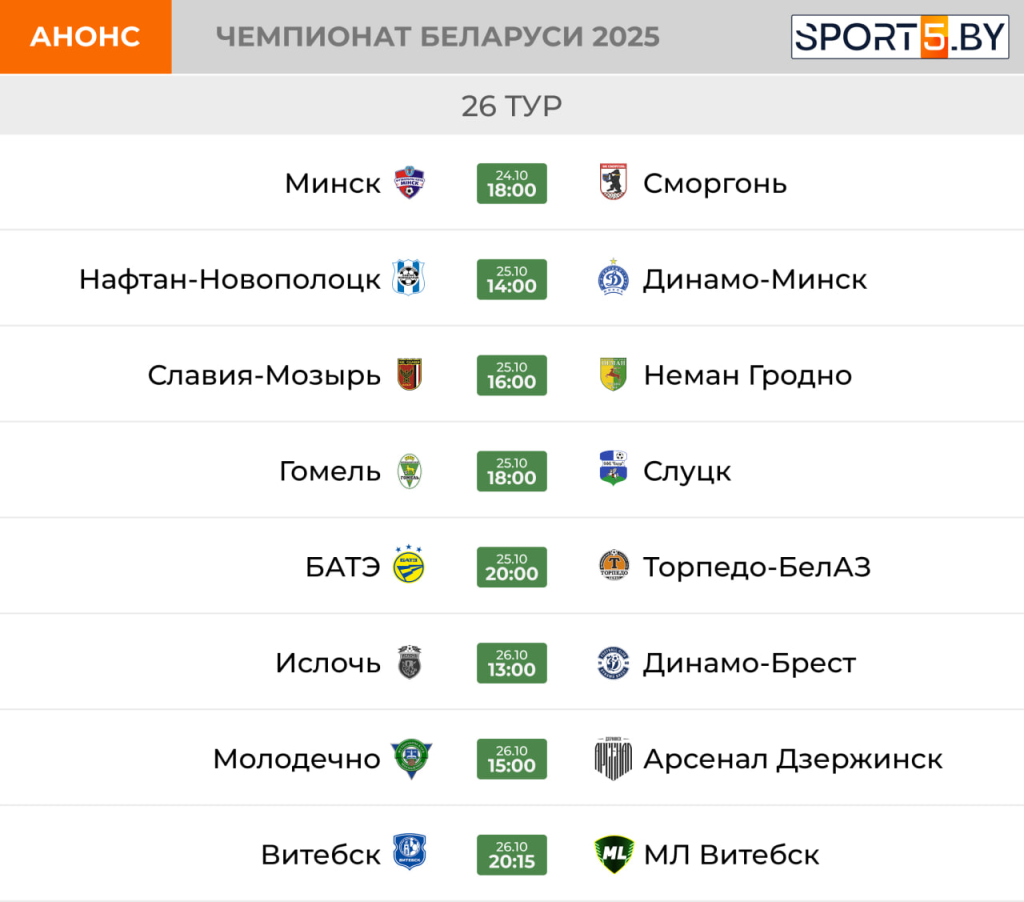 Обо всех поединках 26-го тура высшей лиги расскажем по порядку в традиционном анонсе.