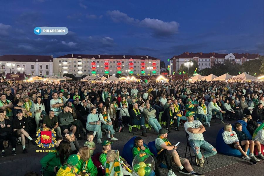 Фан-зона с большим экраном для просмотра встречи в Гродно была организована на площади Советской.