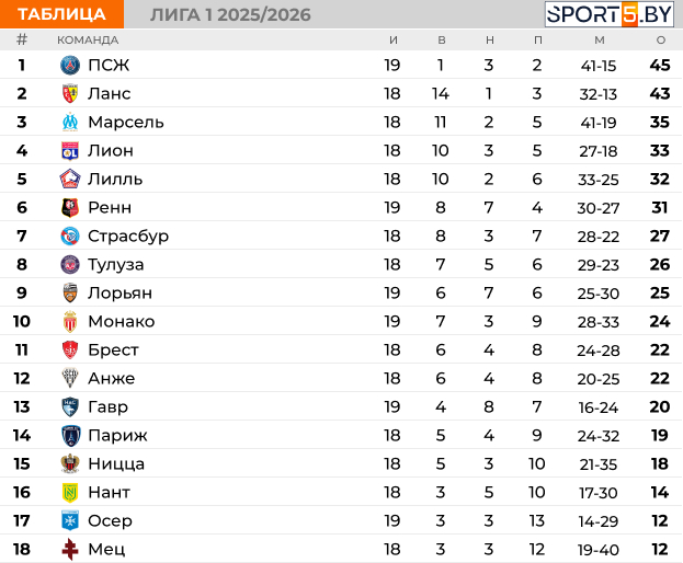 Турнирная таблица:
