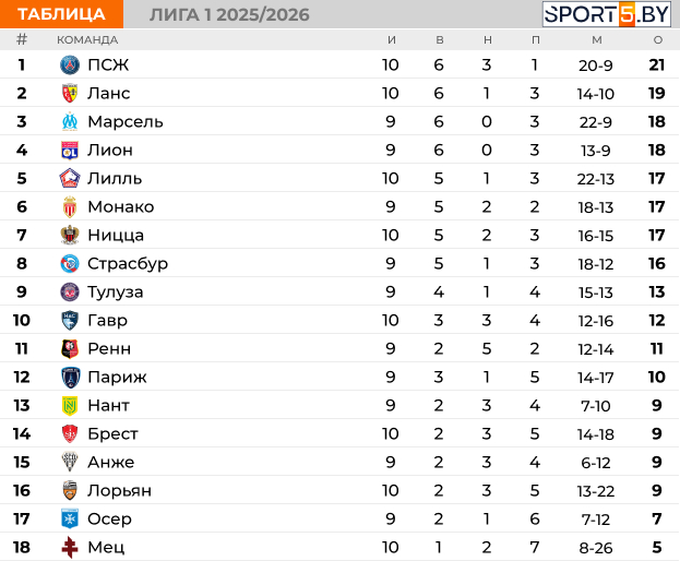 В чемпионате Франции по футболу начался 10-й тур. Подводим итоги дня.