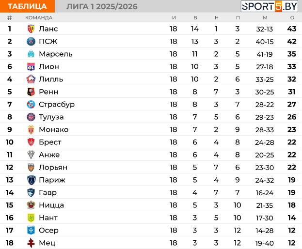 Турнирная таблица: