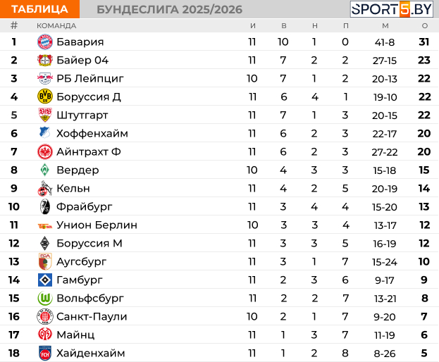 Шестью матчами продолжился 11-й тур в немецкой Бундеслиге. В шести матчах было забито 29 мячей.