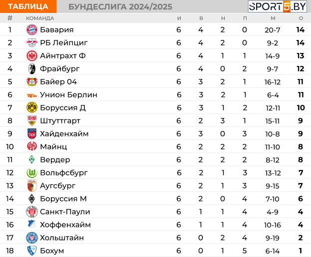 Тремя матчами завершился шестой тур в чемпионате Германии.