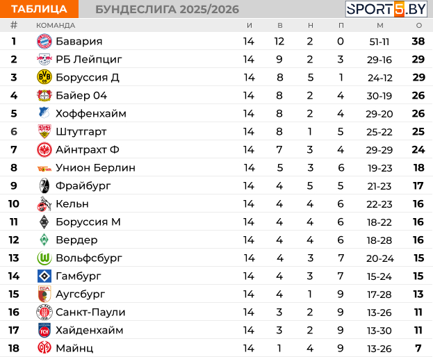 Сегодня, 14 декабря, в Бундеслиге состоялось пять матчей 14-го тура.