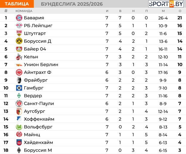 Сегодня, 18 октября, в Бундеслиге состоялось шесть матчей седьмого тура.