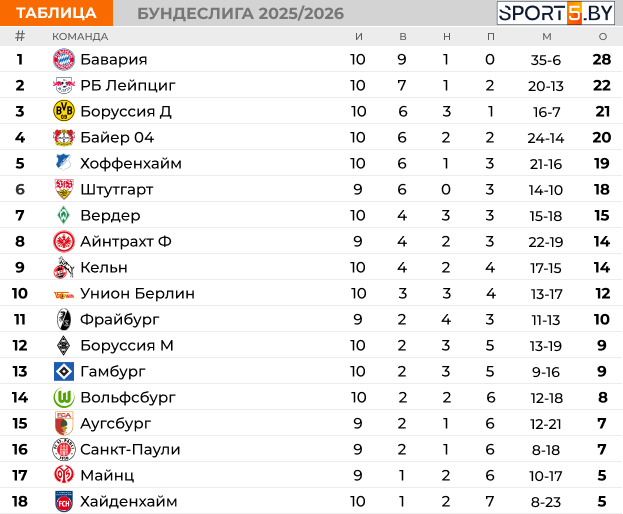В чемпионате Германии продолжается 10-й тур. "Бавария" первый раз не смогла победить, "Байер" разгромил "Хайденхайм".