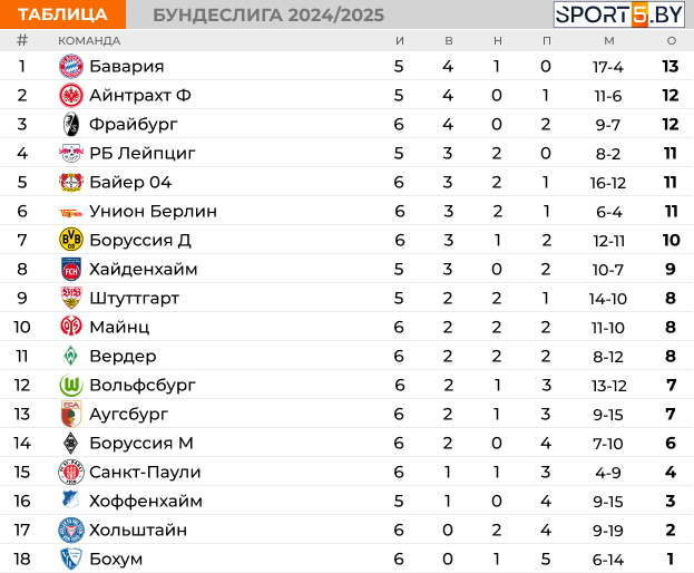Турнирная таблица выглядит следующим образом.