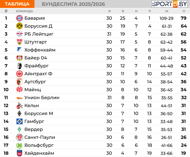 Сегодня, 24 апреля, в Бундеслиге стартовал 31-й тур.