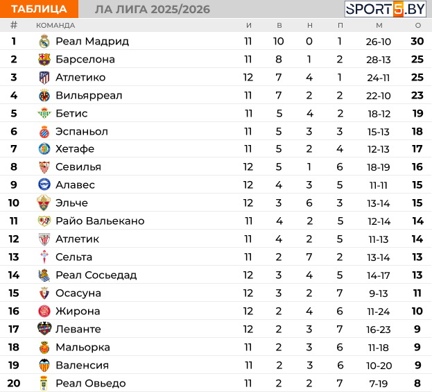 Еще один матч субботы, где встретятся "Эспаньол" и "Вильярреал", состоится в 23:00. Прямую трансляцию смотрите на нашем сайте и телеканале "Беларусь 5".