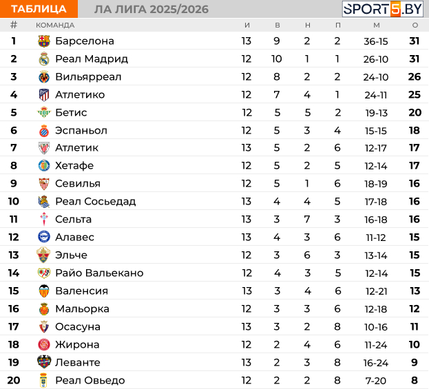 Субботними матчами продолжился 13-й тур в испанском чемпионате.