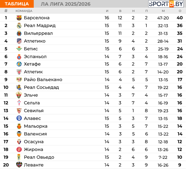 Таблица Ла Лиги на данный момент: