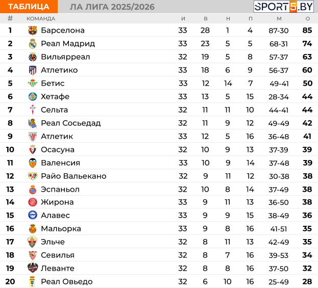 В Ла Лиге продолжается 32-й тур: 25 апреля было сыграно четыре поединка.