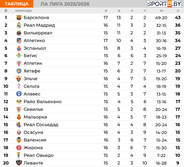 Таблица Ла Лиги на данный момент: