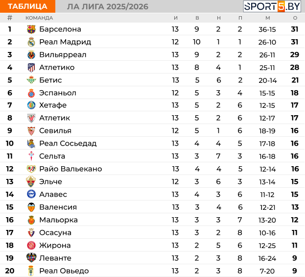 Таблица Ла Лиги на данный момент:
