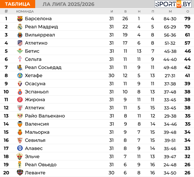 В чемпионате Испании по футболу завершились четыре поединка воскресенья. Подводим их итоги.