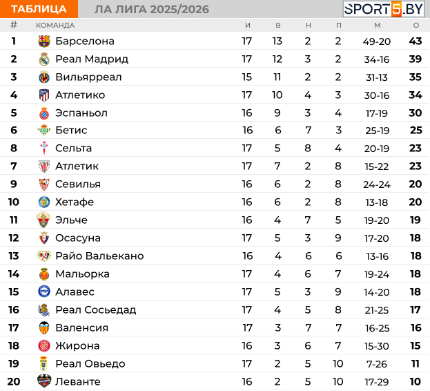 Таблица Ла Лиги на данный момент: