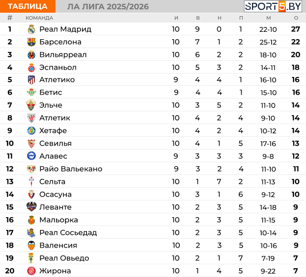 В чемпионате Испании по футболу завершились некоторые поединки 10-го тура. Подводим их итоги.