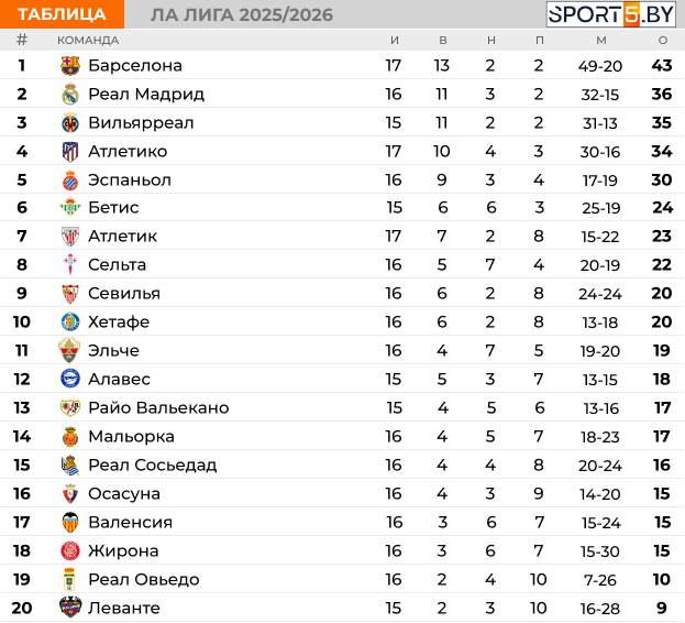 Сегодня, 14 декабря, в Ла Лиге уже состоялось два матча 16-го тура.