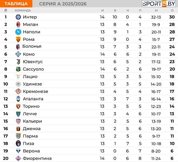 Сегодня, 6 декабря, в Серии А уже состоялось два матча 14-го тура.