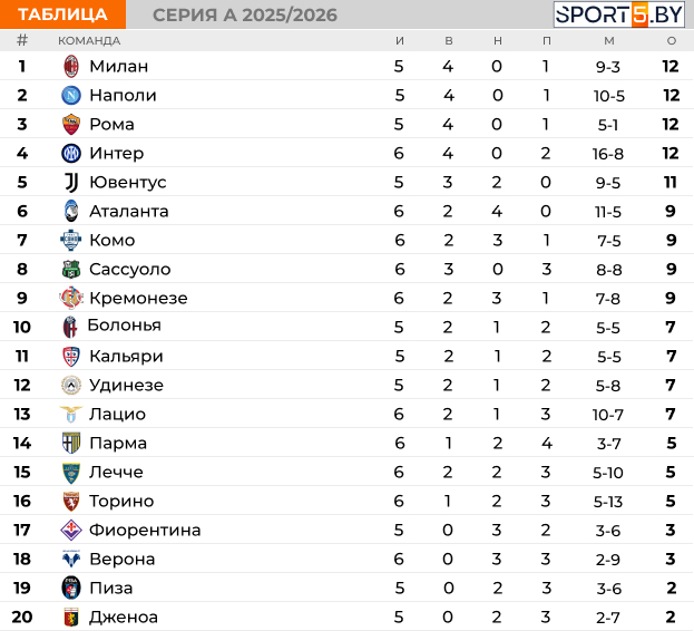 Таблица Серии А на данный момент: