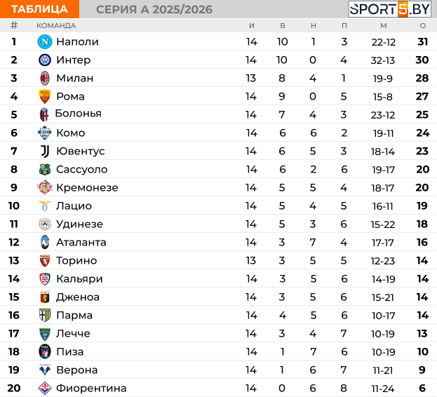 Сегодня, 8 декабря, в Серии А уже состоялось два матча 14-го тура.