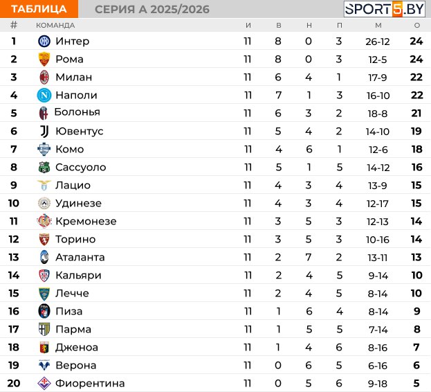 Таблица Серии А на данный момент: