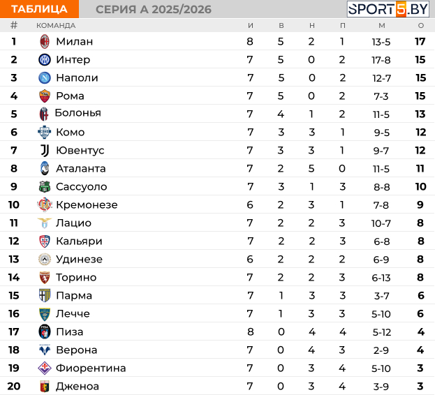 Отметим, "Пиза" в нынешнем сезоне чемпионата еще ни разу не выигрывала.