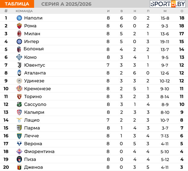 Четырьмя матчами в воскресенье продолжился восьмой тур в чемпионате Италии.