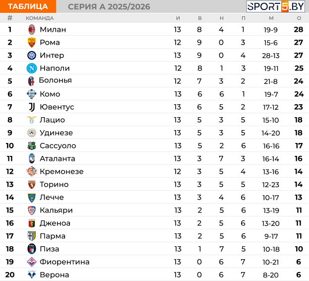 Сегодня, 30 ноября, в Серии А состоялось уже три матча 13-го тура.
