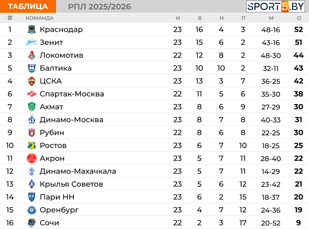 Таким образом, "Балтика" возвращается на четвертую строчку чемпионата России, набрав 43 очка. "Динамо-Махачкала" на 12-м месте.