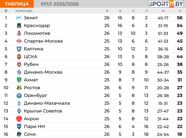 После этого результата подопечные Сергея Семака продолжают оставаться на первом месте в турнирной таблице РПЛ, набрав 56 баллов.