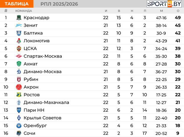 После этой встречи московская команда набирает 38 очков и закрепляется на шестом месте в чемпионате России. "Оренбург" остается на 15-й строчке с 18 очками в активе.